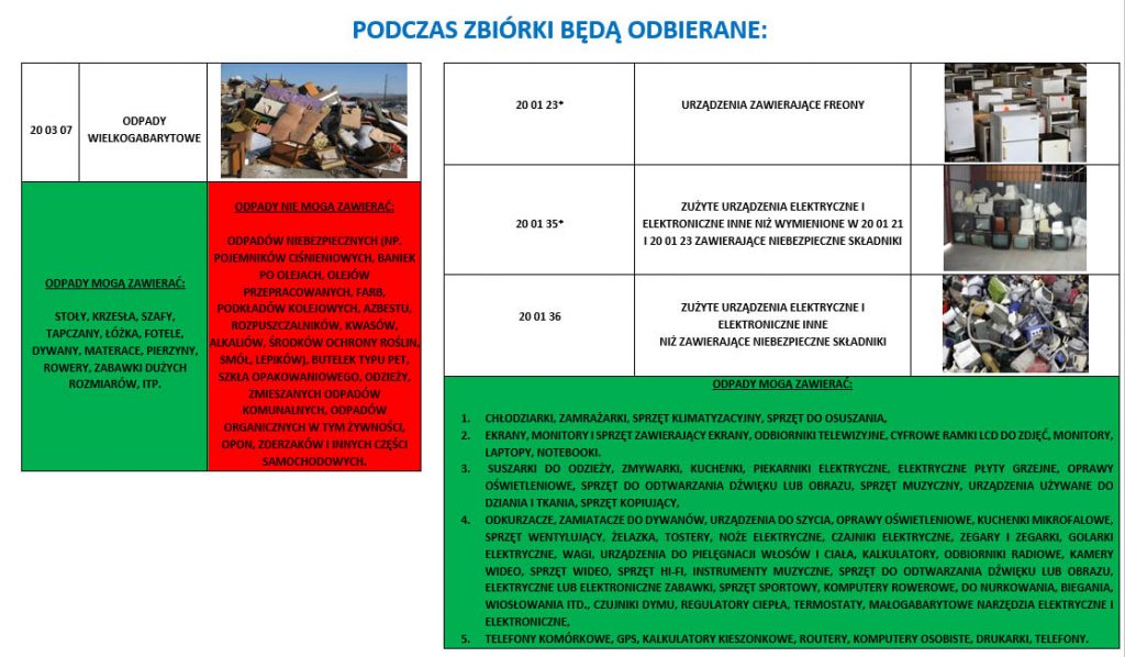 Odpady należy wystawić przed teren swojej posesji do godziny 7:00 w dniu planowanej zbiórki.