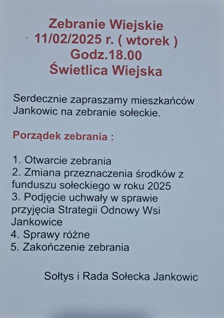 Zebranie Wiejskie 11 luty 2025r.( wtorek) godz.18.00 Może ci się spodobać również Przerwa w dostawie wody 12.02.2025r.( środa) od godz.8.30 do 14.00 10 lutego 2025 XXXV Turniej Rad Sołeckich – Owczary 15/06/2024 23 czerwca 2024 Podatek 9 marca 2020